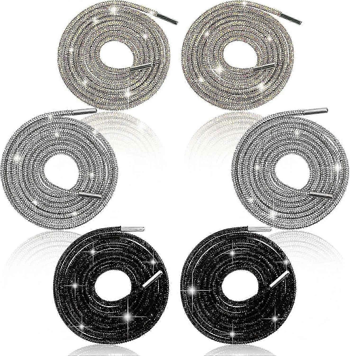 3Pairs Rhinestone Round Shoe Laces, 55' Bling Bling Crystal Rhinestone Glitter