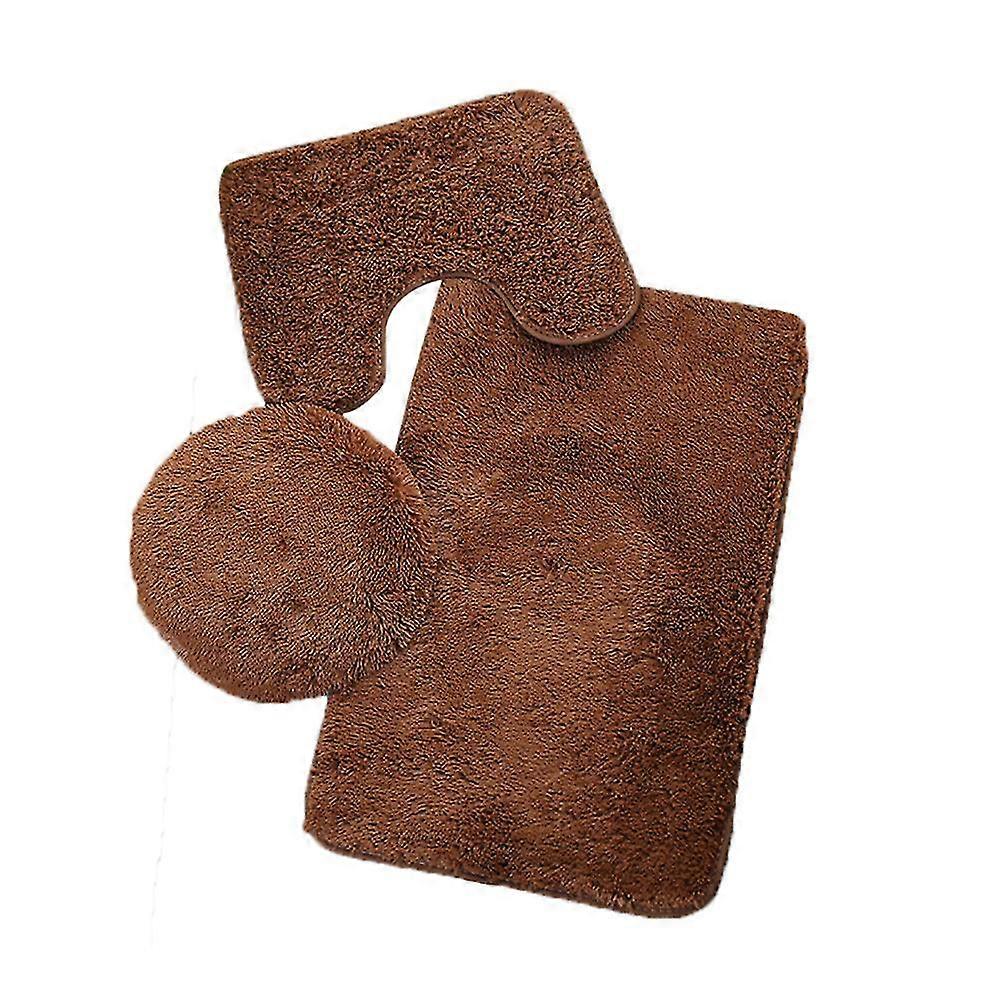 3pc Bathroom Set Rug Mat Toilet Lid Cover Plain Color Bathmats FAN2434