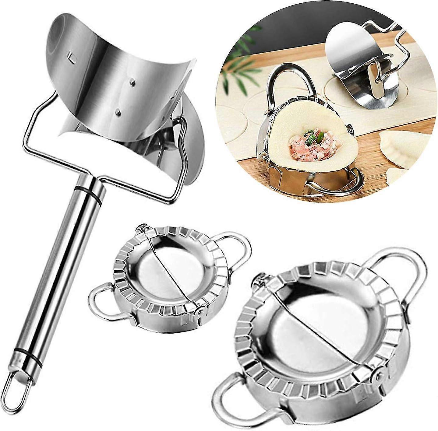 3PCS Stainless Steel Dumpling Makers, 1 Dumpling Skin Maker, 2 Dumpling Molds in Different Sizes, Chinese Dumpling Cutter Pie Ravioli Empanadas Press