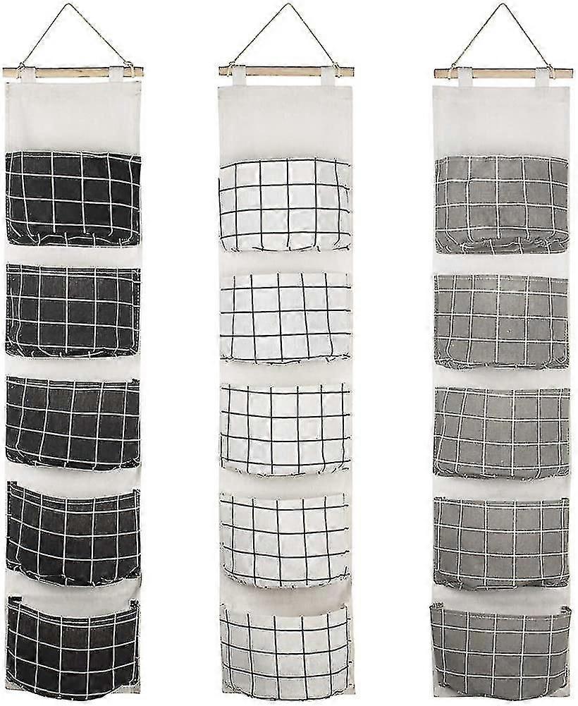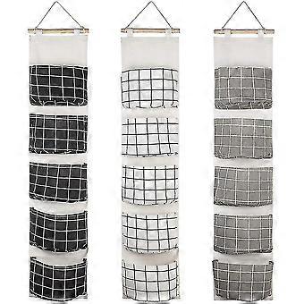 3pcs Hanging Storage Bag With 5 Pockets, Motasom Fabric Wall Shelf Basket
