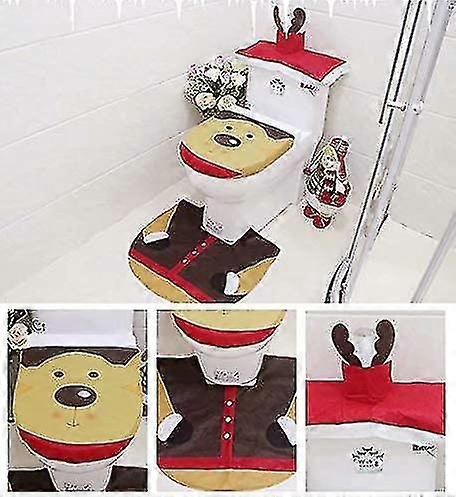 3pcs Christmas, Toilet Seat Cover Rug Set, Christmas Bathroom Decorations