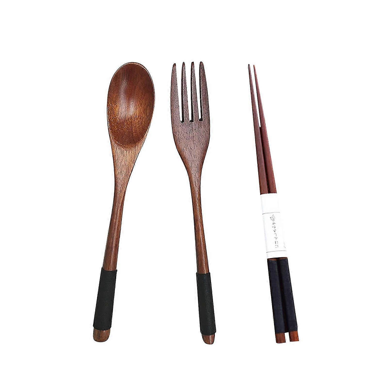 3pcs Set Wooden Natural Cutlery Wooden Chopsticks Spoon Fork Set, 8.5inch