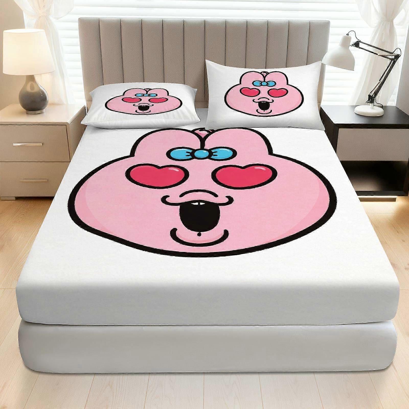 3pcs Cute Pink Fitted Sheet Set Coreless Valentine'S Theme