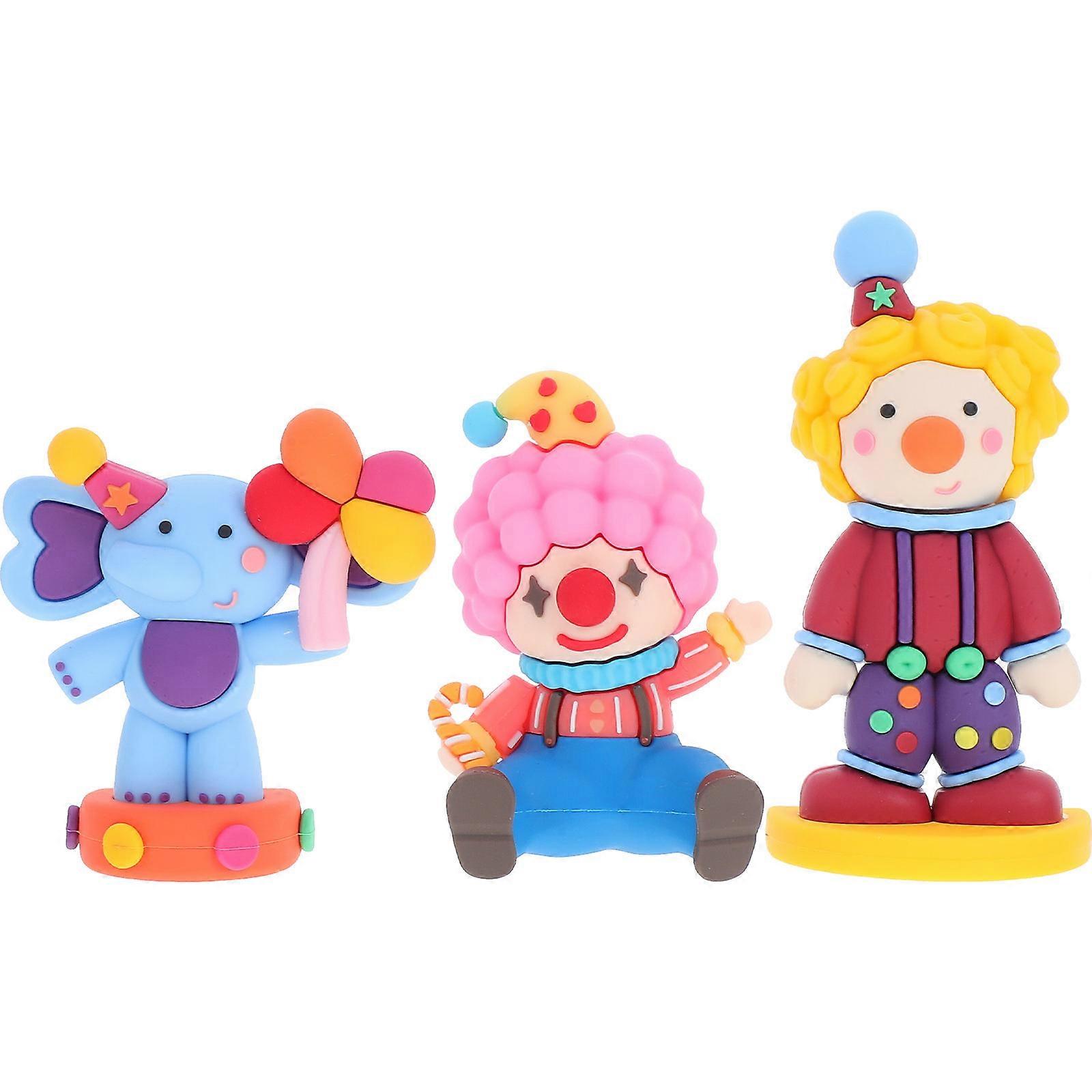 3pcs Mini Clown & Elephant Figurines with Stable Base for Cake, Office Desk, Garden, or Playhouse Decor – , Non Fading Cartoon Ornaments for Micro