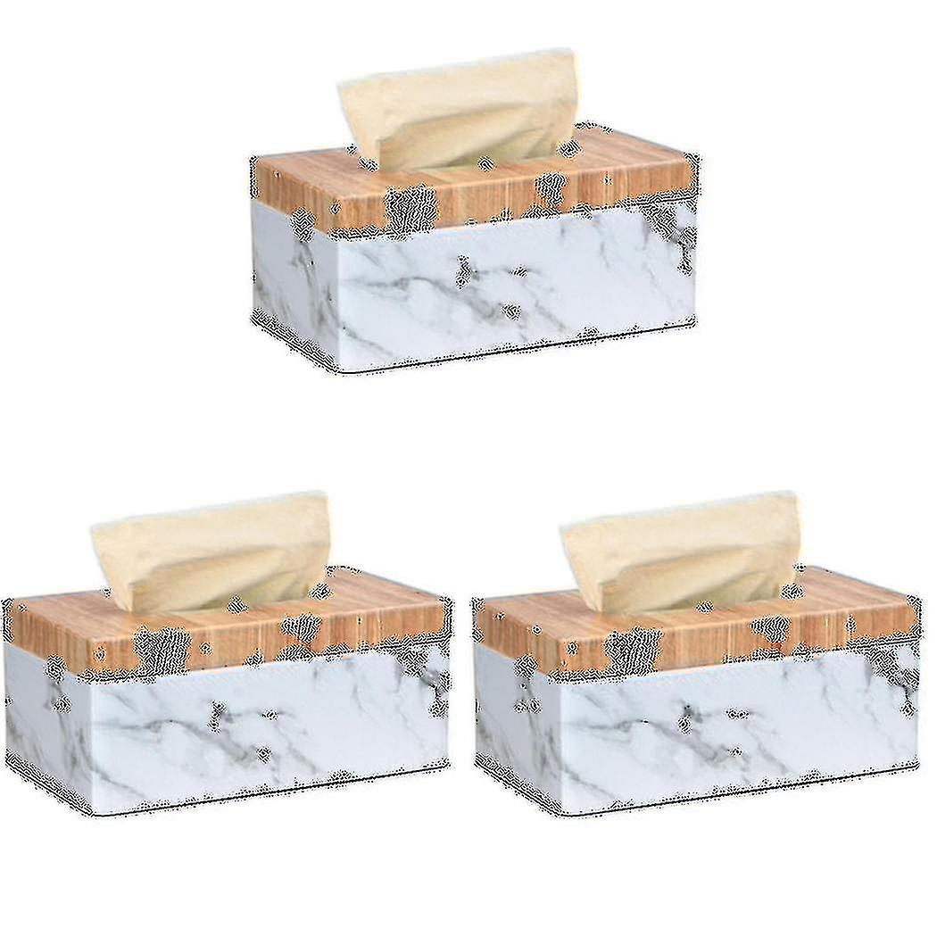 3x Rectangular Marble Pu Facial Grain Tissue Box Cover Napkin Holder Paper Towel Dispenser Containe