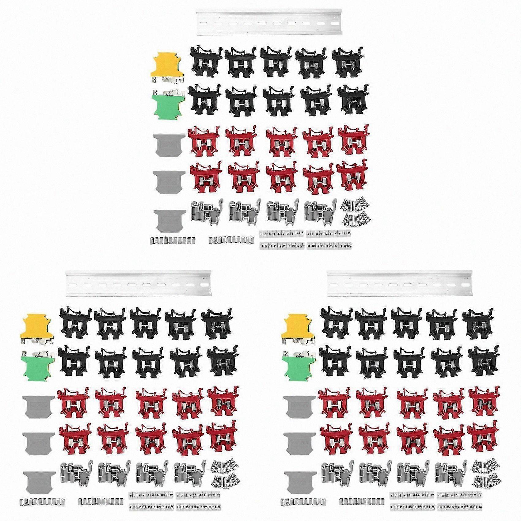 3X DIN Rail Terminal Blocks Kit Terminal+Ground Blocks+Aluminum Rail+End Brackets+End Covers+Jumper
