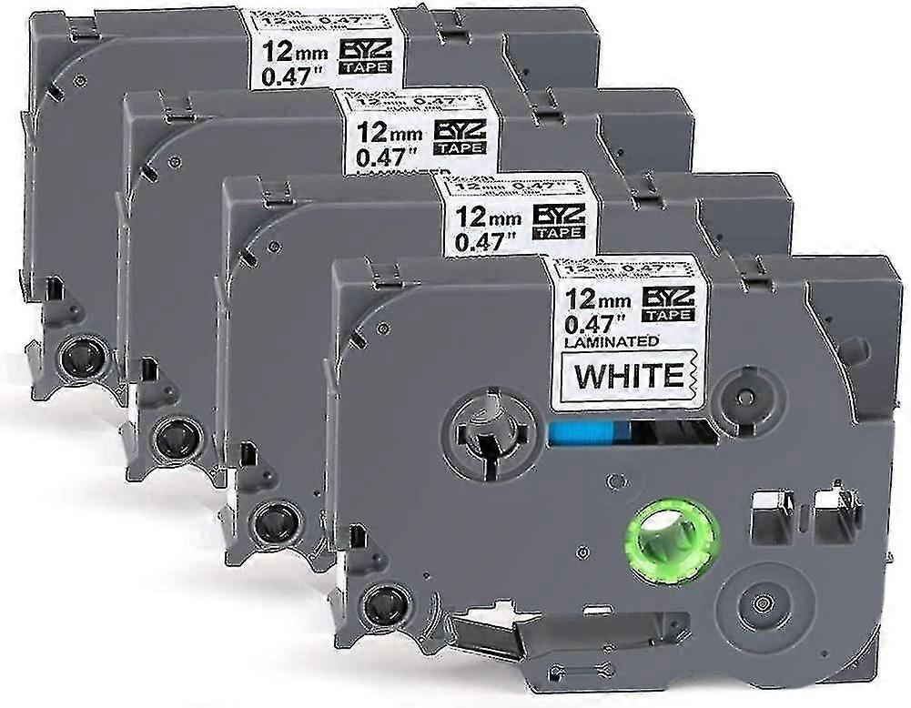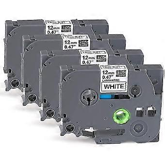 4 X Label Tape Cassette Black On White Label Tape 12mm X 8m,compatible Brother