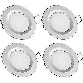 4 × LED راحة الأضواء الكاشفة 12 فولت ثقب 58-65 مم 3 واط 3200 كيلو راحة ضوء السقف لقارب متنقل قافلة فان يخت أبيض دافئ (تشطيب فضي)