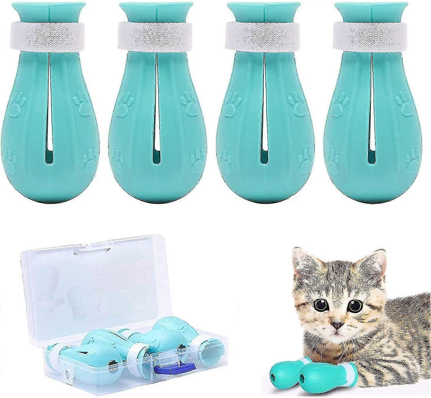4-cat Shoe,anti-scratch Cat Foot Boots,adjustable Cat Paw Protection,cat Massage Station(blue)