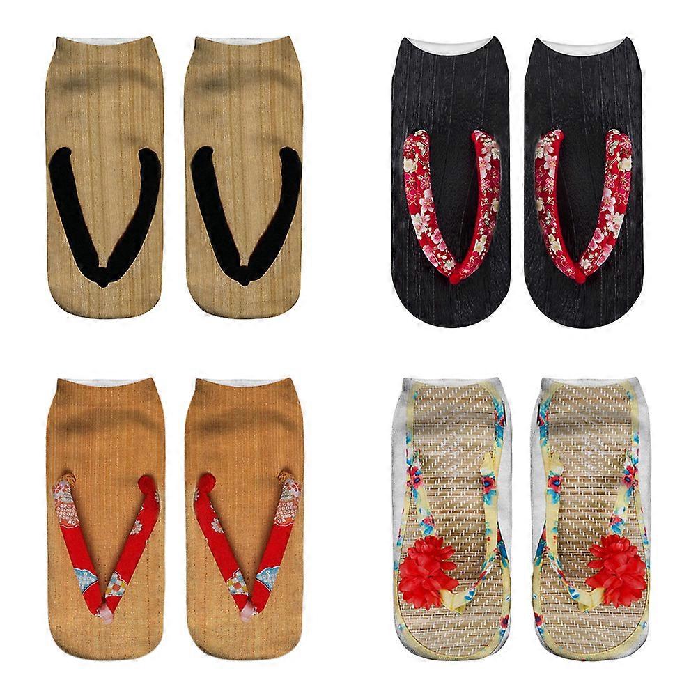4 Pairs Funny Flip Flop Manicure Print Socks 3d Pattern Socks Sandal Printed Socks Low Cut Ankle Socks Running Yoga Socks