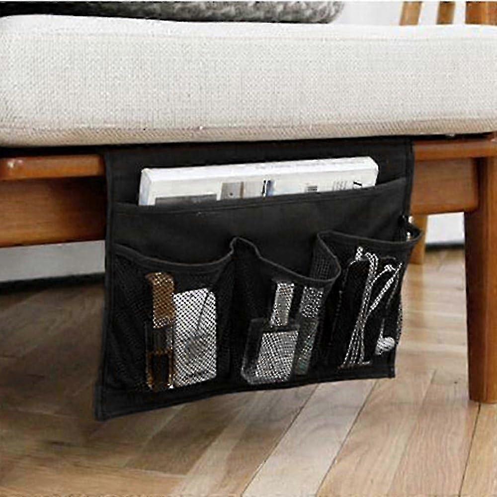 4 Pocket Bed Sofa Hanging Storage Bag Holder Pouch For Book Phone Glasses Tv Remote(black)