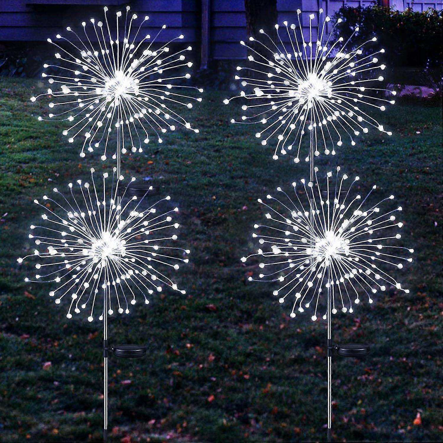 4-Pack Solar Outdoor Lights for Garden Decorations, 360 LED Solar Firework Lights with 2 Lighting Modes, Solar Powered Lights Waterproof for Outside P
