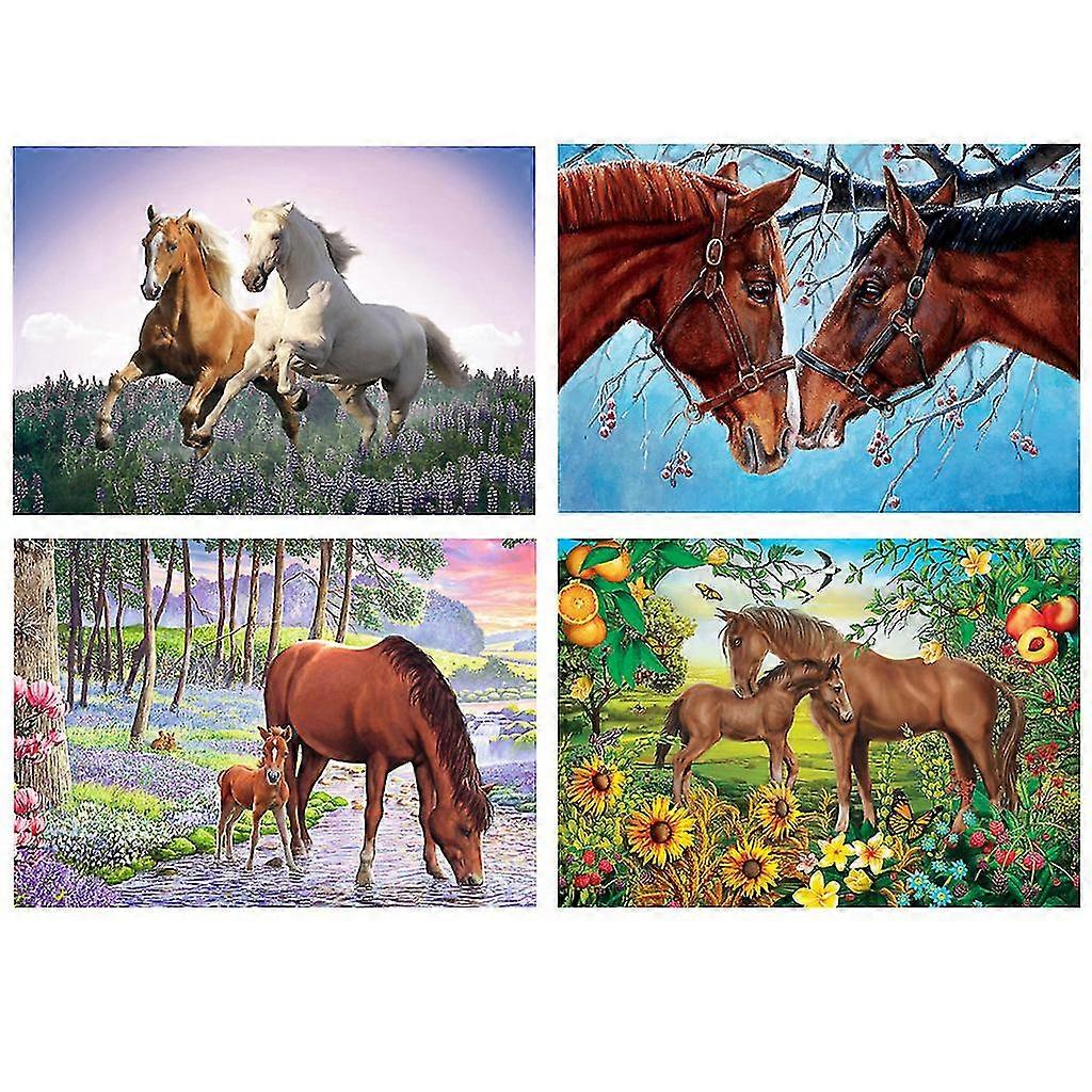 4 Pack Running Horse 5d Diy Diamond Paint Kits Full Drill For Rhinestone Embroid