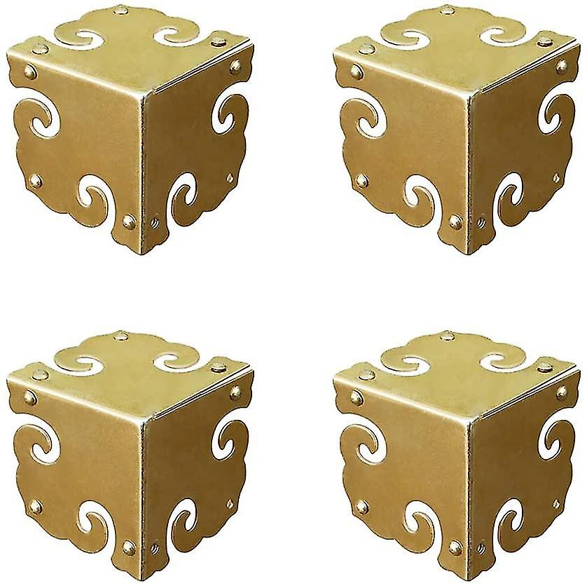 4 Pack Vintage Pure Brass Corner Protectors For Desktop Jewelry Box Gift Box Three Sides (golden)