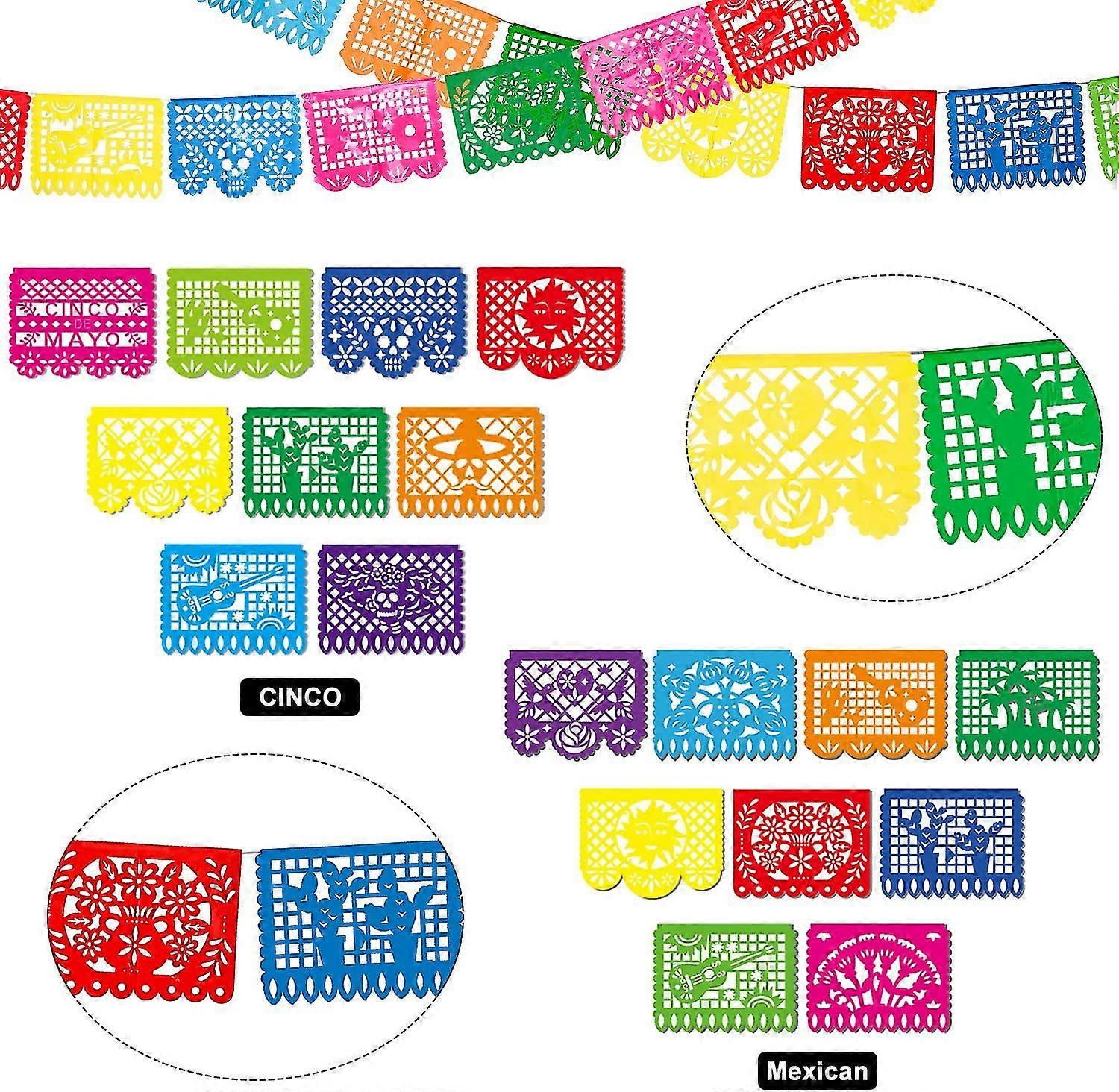 4 Packs Mexican Party Banners Large Plastic Papel Picado Banner Fiesta Plastic Banners, 4 Different Designs, 60 Feet Long Totally