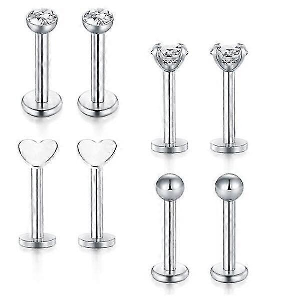 4 Pair 16 Gauge Lip Larbet Stud Piercing Bars Set 8mm Silver Stainless Steel Tragus Helix Piercing Jewellery