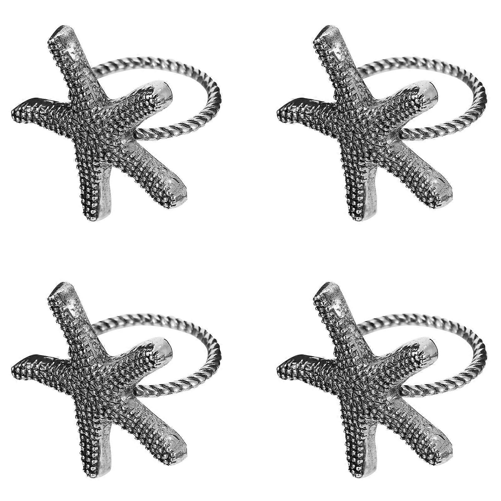 4 Pack Alloy Napkin Buckles, Nautical Design, Reusable Table Napkin Holders for Weddings, Dinners, Parties, and Banquet Decorations