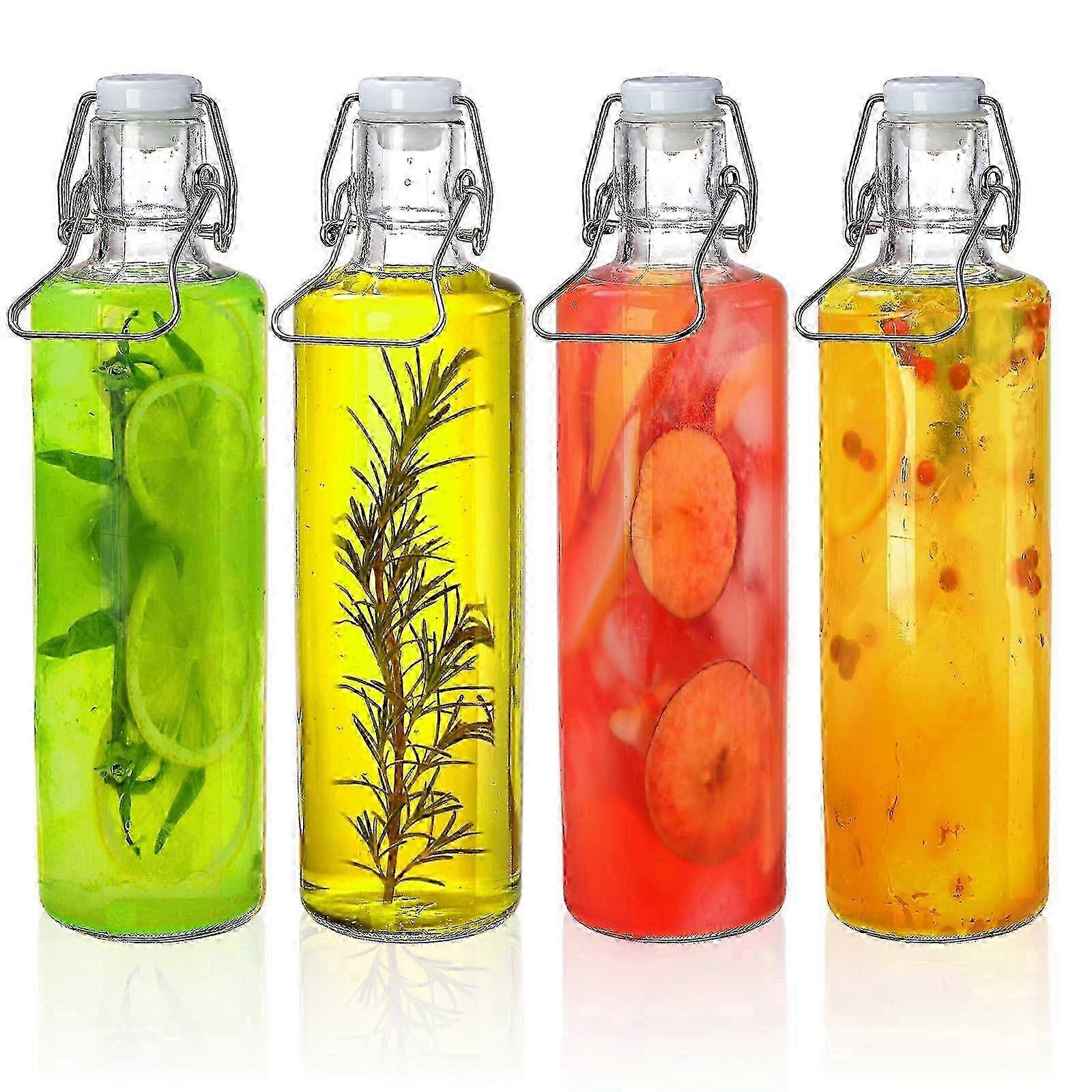 4 Pack Flip Top Glass Bottle, 1 Liter / 33 Oz Swing Top Glass Bottles with Airtight Lid