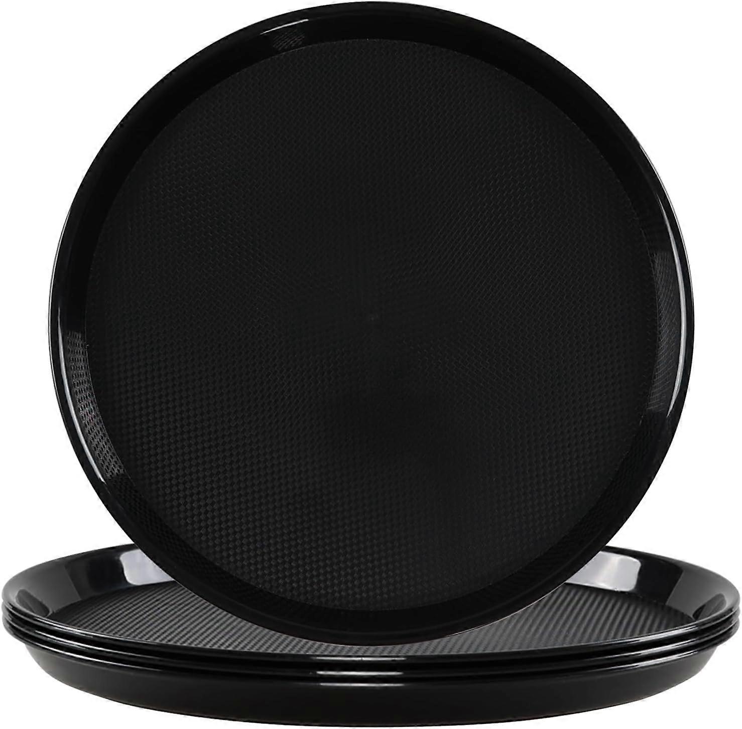 4-Pack Plastic Round Restaurant Serving Trays, Round Non Slip Bar Serving Tray, Black