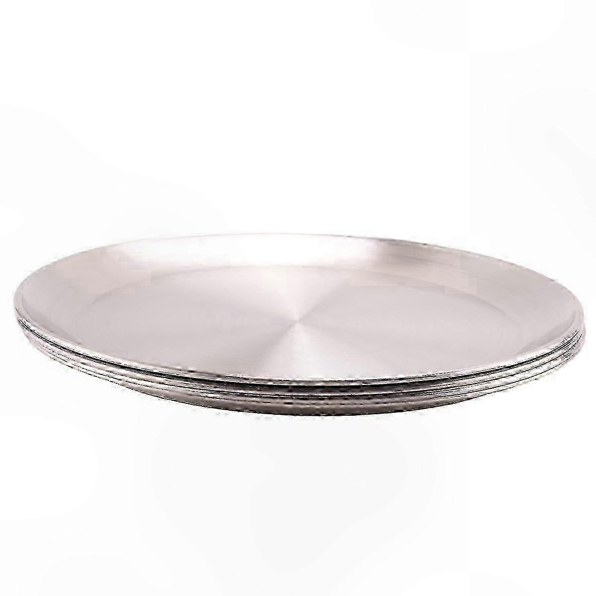 STAINLESS STEEL: Pizza dough tray made of high-quality stainless steel. No metal taste or harmful substances transferred to your dough. 100% healthy and rust-resistant, designed to withstand regular cooking use. A safe alternative to non-stick aluminum pizza pans. ROBUST STRUCTURE: Heavy-gauge metal construction resists warping or deformation under high heat. Smooth rolled edges for comfortable handling. Promotes even heat distribution for crisp, golden-brown pizzas. EXQUISITE CRAFT: Superior brushed finish stays shiny and is easy to clean. Lightly grease the trays for easier release. Dishwasher safe. Gently sloped edge helps prevent toppings from spilling over. 4 PIECES IN ONE SET: Stackable design saves storage space. Set of 4 allows you to prepare multiple homemade or store-bought pizzas at once, ideal for holidays, parties, gatherings, catering, or afternoon tea. Great gift for weddings or housewarming. HIGH PERFORMANCE: Suitable not only for pizzas but also for baking or roasting pies, chips, fish, bread rolls, focaccia, and sausages. Can also be used as serving platters, dinner plates, grilling pans, or trays for warming leftovers. Color: Silver Material: Stainless steel Size: Diameter 30 cm Package Contents: 4 x Pizza pan Note: Light and display settings may cause slight color variation between the image and the actual item. Measurement may vary by +/- 1-3 cm.