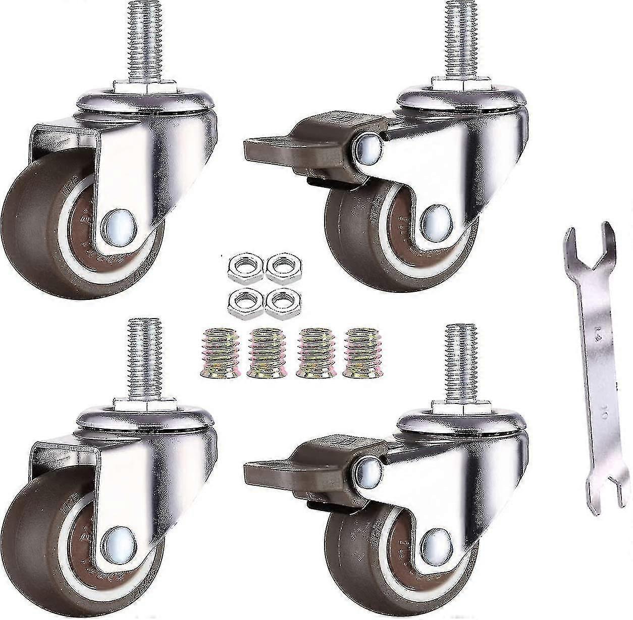 4 Pack Small Furniture Casters 25mm Soft Tpe Rubber M6 X 15mm Thread (2pcs With Brake) (25 mother gift