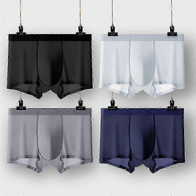 4-Pack Men's Seamless Underwear Ice Silk Boxer Briefs Sexy Sheer Transparent Design - Premium Quality