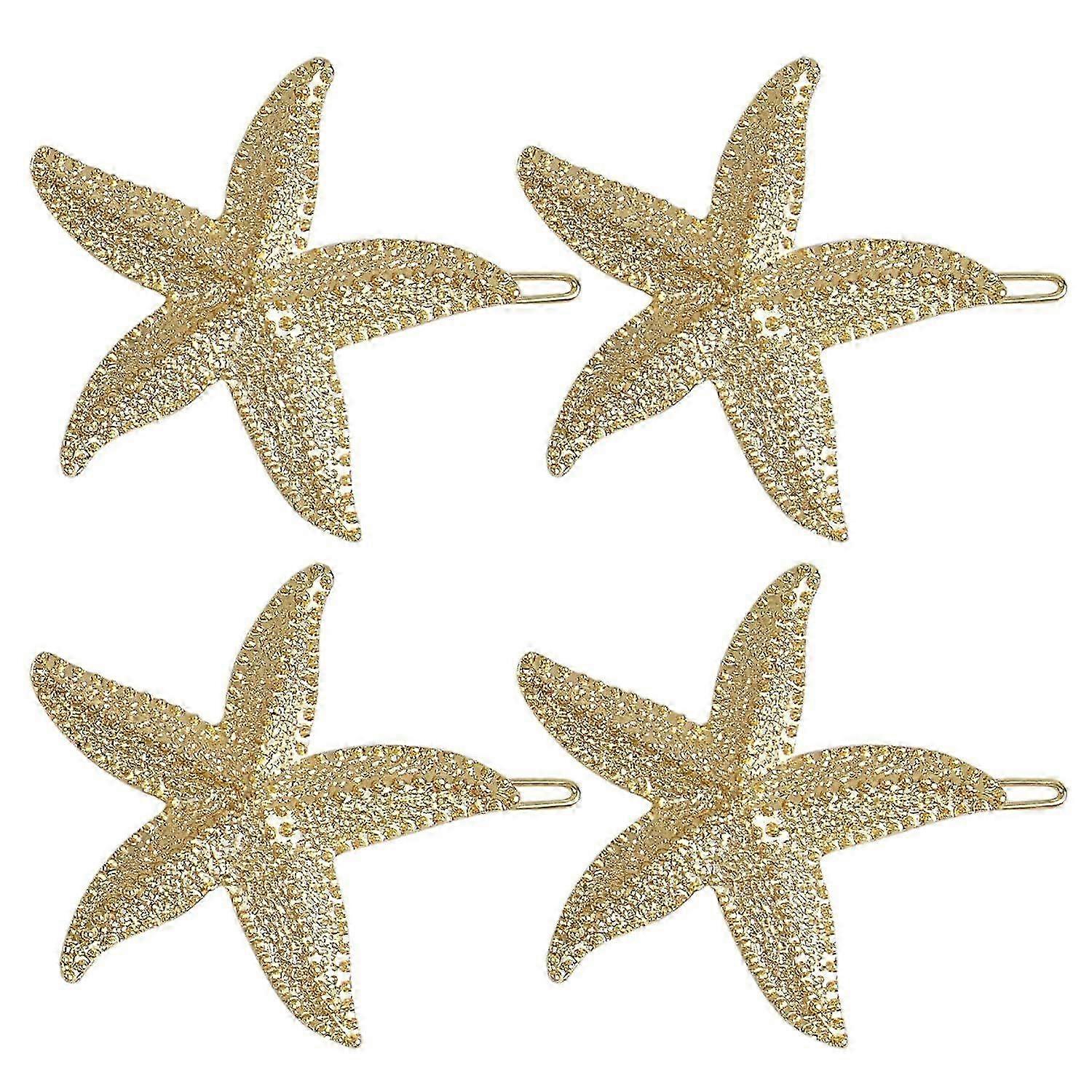 4 Pack Starfish Hair Clips Bridal Hairpin Metal Pins Sea Star Clip Pretty Beach Pin for Wedding Women Barrettes Styling Mermaid Accessories Valentine'