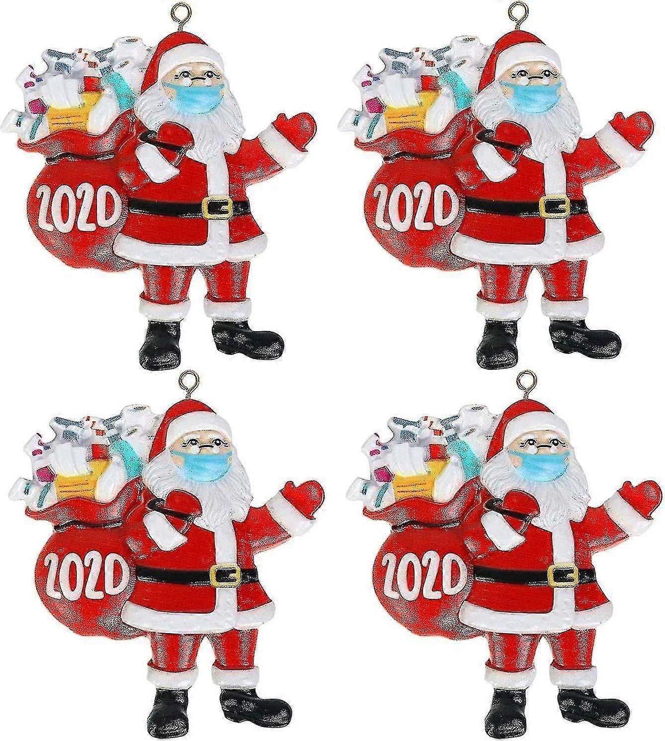 4 Pack 2020 Santa Claus Christmas Decorations with Hanging Ring, Santa Claus with Cover, Christmas T