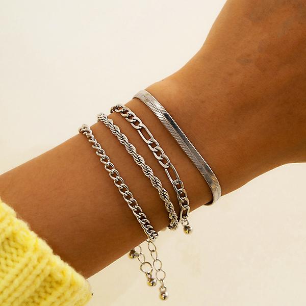 4 Piece Bracelets Cuban Bracelets Punk Hip Hop Men's And Women's Bracelets Stainless Steel Jewelry Gifts