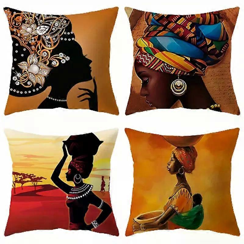 4pcs, Throw Pillow Covers (17.7"*17.7"), Indoor Outdoor Washable Traditional African Women Pillowcase, Home Decor, Room Bed Sofa Chair Cushion Covers,