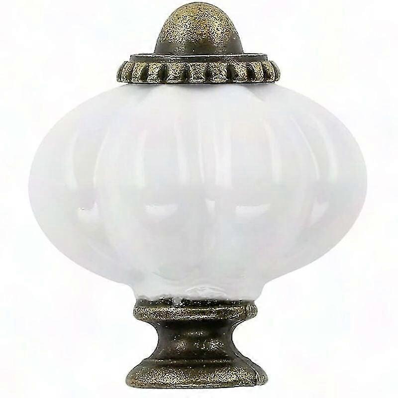 Color: WhiteDiameter: 30mmHeight: 36mmThis unique drawer pull is made of acrylic material.Its surface is smooth, no sharp edges, safe and easy to clean.The pumpkin shape design is beautiful and easy to use.Its white appearance and bronze decoration is very retro.Simple installation, just tighten the screws to complete.Suitable for family, office, restaurants and other places.