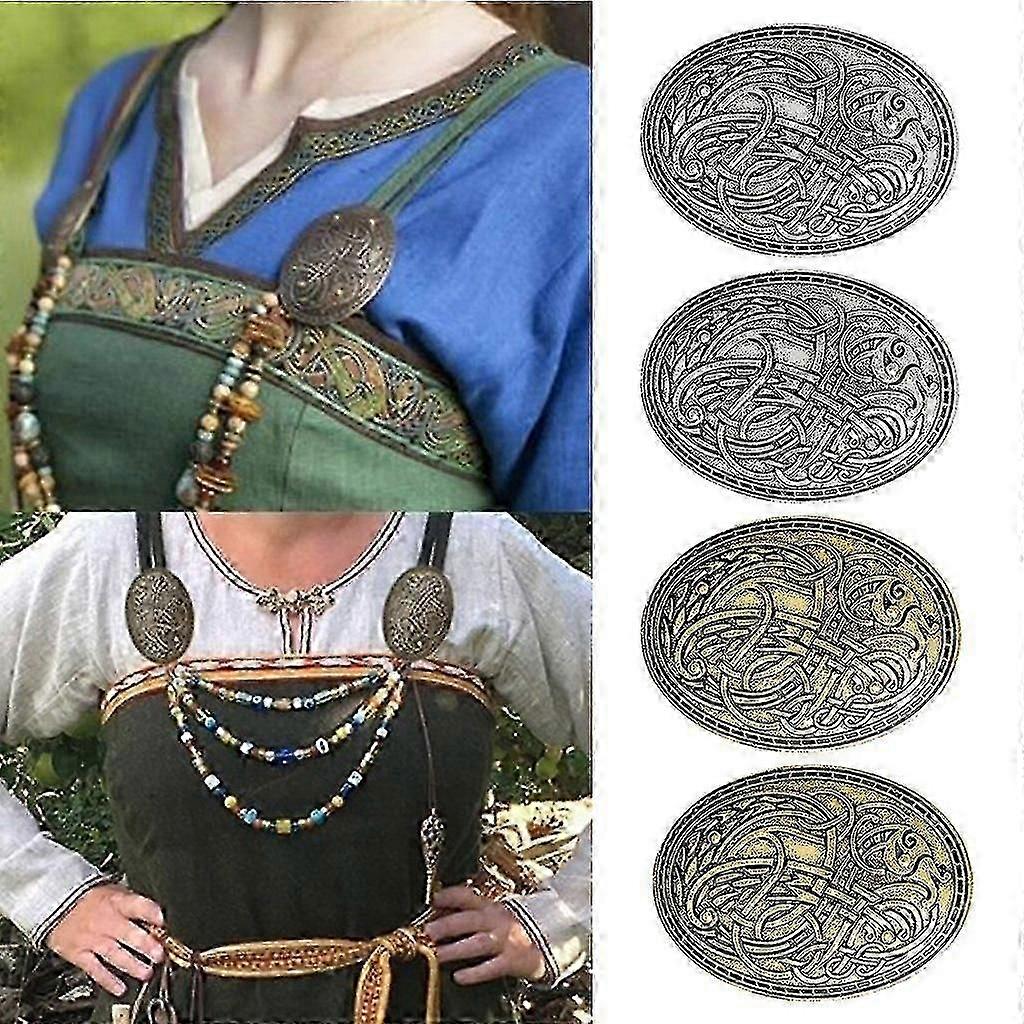 4 Pieces Norse Medieval Viking Symbol Brooch Oval Shawl Sweater Pin-Good