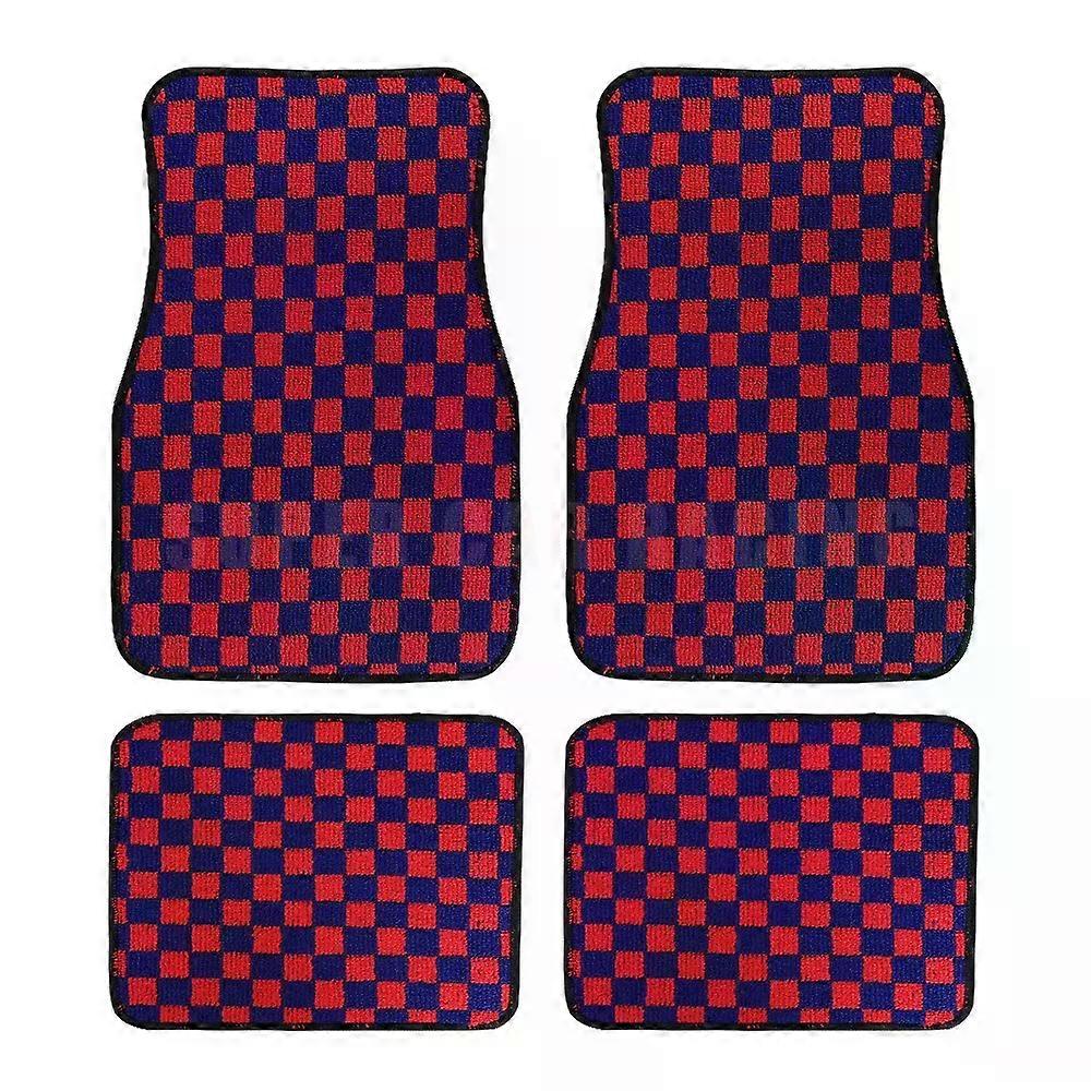 4pcs Floor Mats Checkered Front Rear Carpets Floor Mats Auto Interior Decorative Accessory Anti Slip Car Carpet Sets