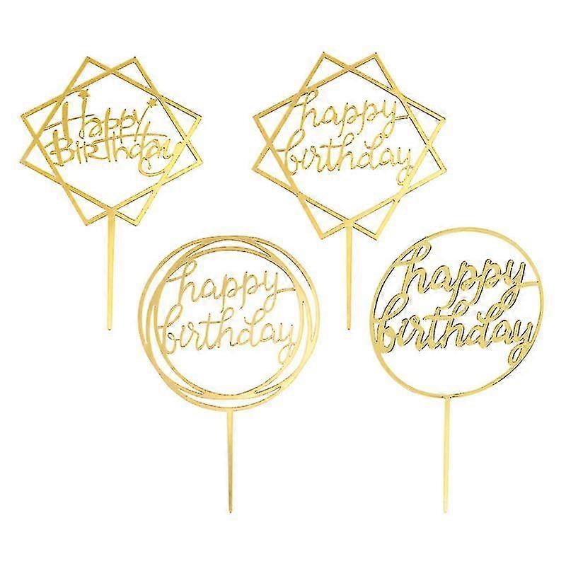 4pcs Baking Cake Decoration Supplies Golden Square Circle Cake Toppers Shiny Happy Birthday Cake Picks For Birthday