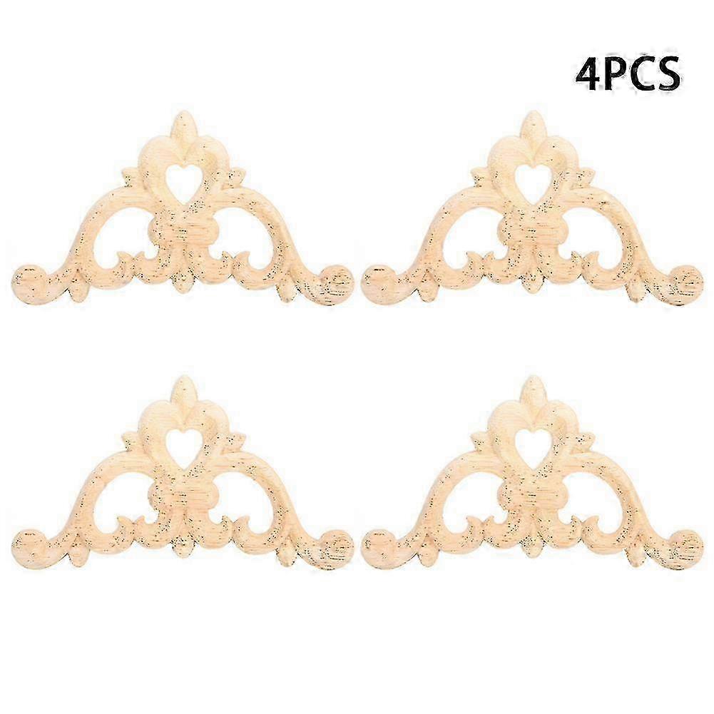 4pcs Wood Carved Corner Onlay Applique Unpainted Cabinet Decal for Home Furniture Decor