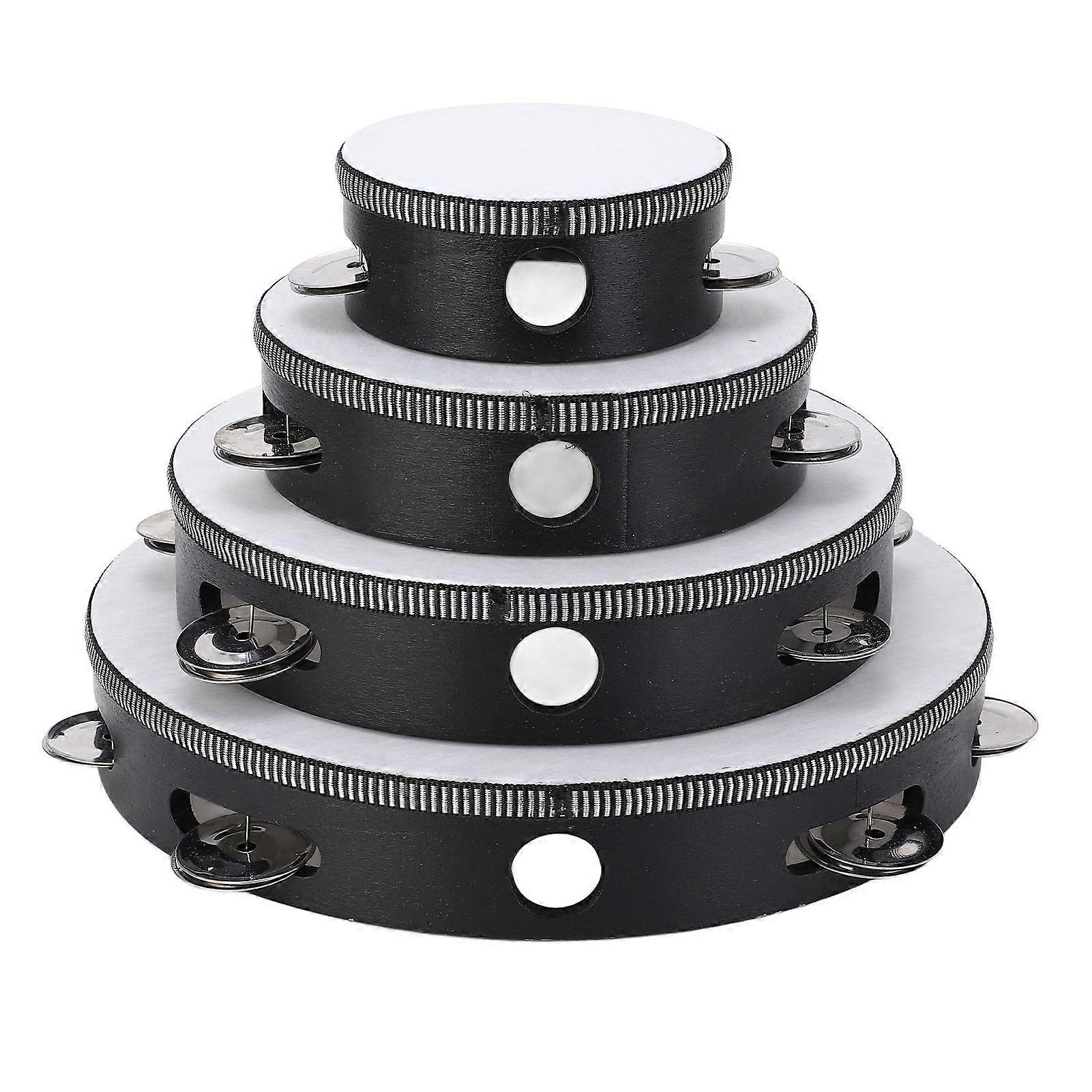 4Pcs Tambourine 4in 6in 8in 10in Double Row Metal Jingles Hand Held Drum for Band Kids Black White