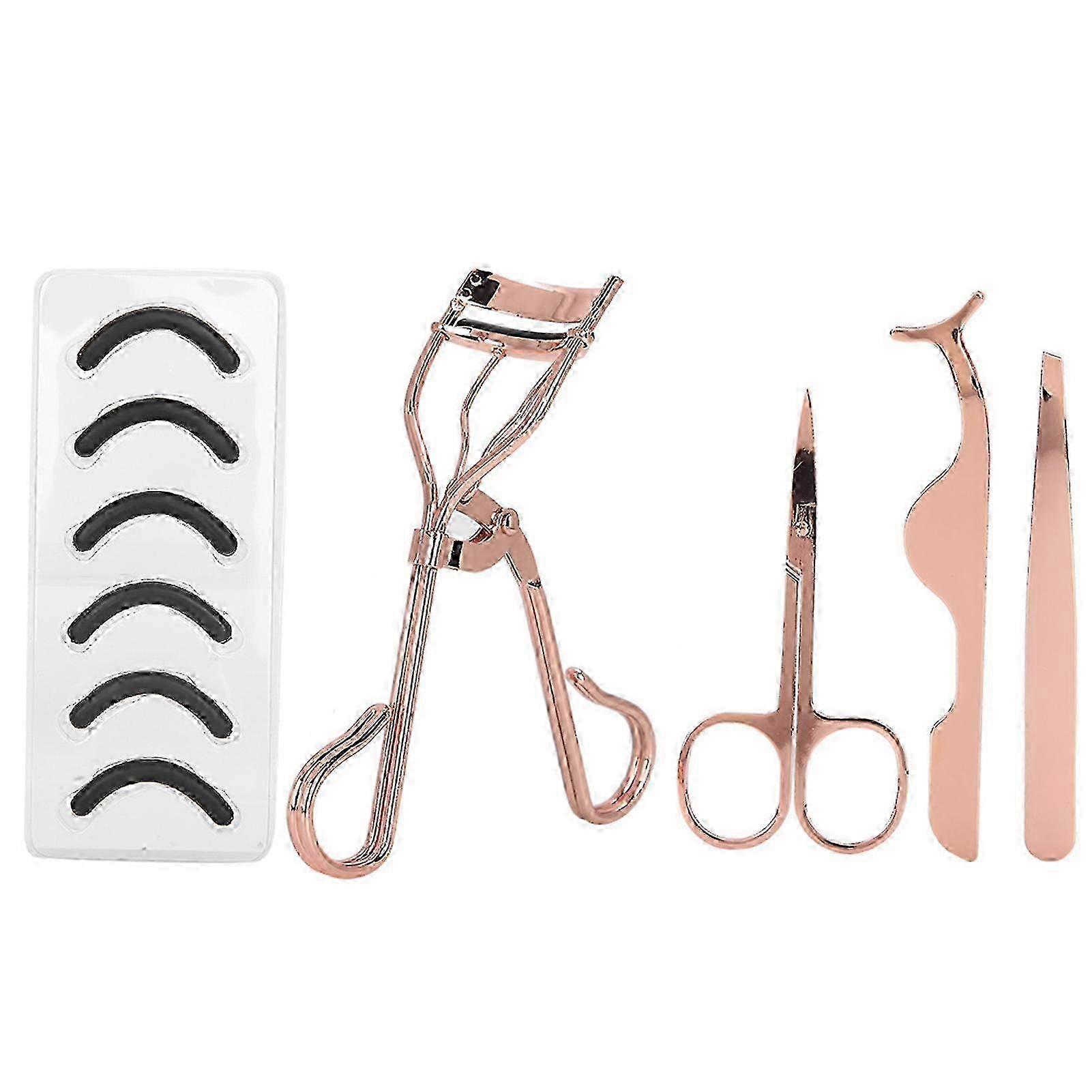 4pcs Rose Gold Eyelash Curler Scissors Tweezers Makeup Set