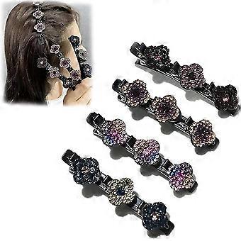4 قطع الساتان النسيج عصابات الشعر، ثلاثة زهرة الجانب مشبك الشعر، مقاطع تقسيم الشعر، البريق حجر الراين قصاصة الشعر كليب