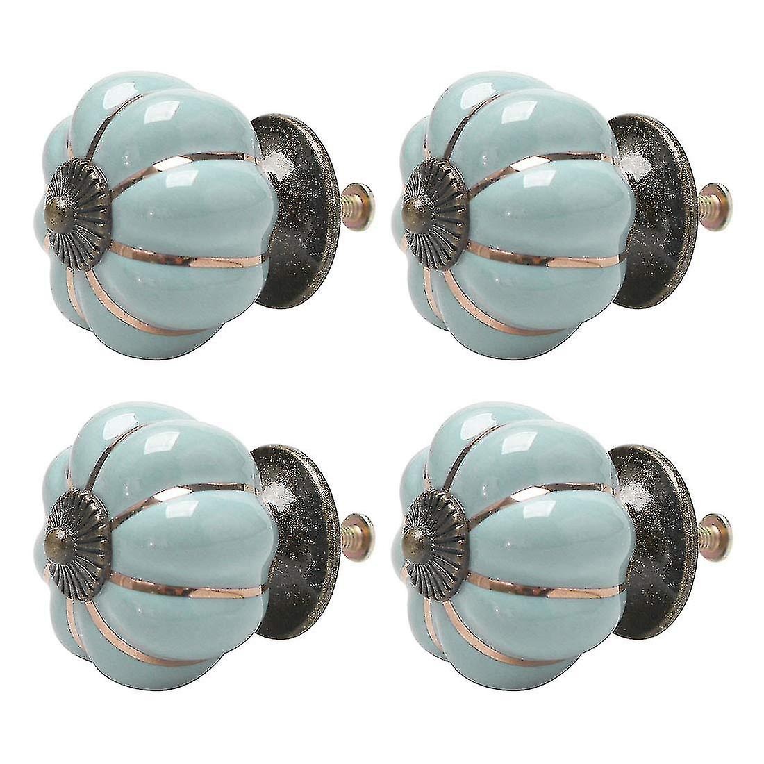 4pcs Ceramic Knobs Vintage Knob Drawer Pumpkin Shaped Pull Handle Furniture Door Cabinet Cupboard Wardrobe Dresser