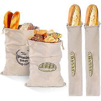 4 قطع الكتان أكياس الخبز ، أكياس الخبز للحفاظ على الخبز الطازج تنفس الغذاء الرباط حقيبة تخزين للخبز الطبيعي غير المبيض حقيبة الخبز ل Arti محلية الصنع
