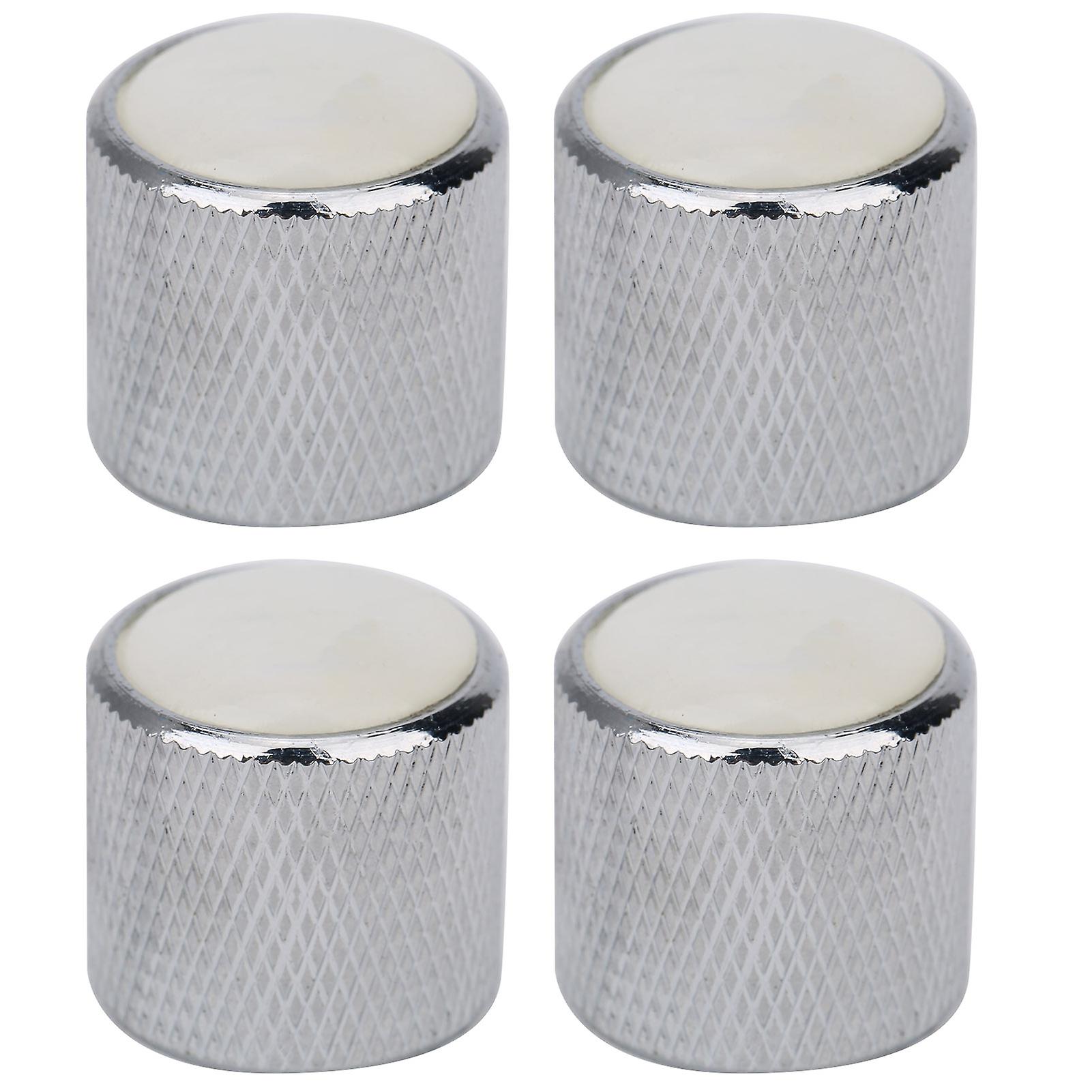 4 Pcs Electric Bass Knob Dome Metal High End Shell Inlaid Tone Volume Control Guitar Parts(White Shell Silver)