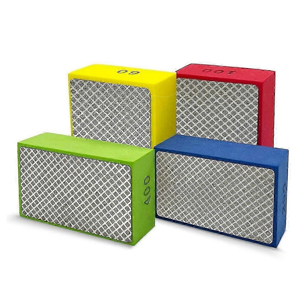 [ Packing List ] These diamond polishing pads include 60# 100# 200# 400# hand polishing pads. The individual hand sanding block dimensions are: 3.7 inch x 2.36 inch x 1.18 inch (9.4 x 6 x 3cm). Help you quickly solve problems such as edge chipping, burrs, and edge grinding that you often encounter in life. [ High Quality Material ] The diamond hand polishing pads are composed of super abrasive diamond plating and high elastic sponge, which is good flexibility and long service life. The diamond sanding block also can be used for both wet and dry polishing. The foam backing has water storage function, which reduces flushing and improve work efficiency. The hand sanding pads are reusable. [ Recommendations ]Our diamond sanding pads with 4 different grits. Grit 60 diamond core grinding pad, used for quick rough grinding, such as polishing and Marble. Grit 100 andamp; 200 are moderately rough and can be polished for details,such as polishing glass edges and wood . Grit 400 for more refined polishing. [ Widely Application ]Diamond hand polishing pad can be widely used in stone polishing, tile trimming, glass burr trimming, metal polishing and renovation, wood deburring, etc, it's an excellent tile tool. QUICK PRODUCT INFORMATIONS:Packing List: 60# * 1pack /100# * 1pack /200# * 1pack /400# * 1pack Individual Dimensions: 3.7 x 2.36 x 1.18 inches Weight: 0.26 lbs Material: super abrasive diamond and sponge Color: Yellow / Green / Red / Blue Number of diamond polishing pads: 4 Pack FEATURE: * The foam backing has water storage function, which reduces flushing and improve work efficiency. *Our diamond sanding pads with 4 different grits. Help you quickly solve problems such as edge chipping, burrs, and edge grinding that you often encounter in life. * The hand sanding pads are reusable. Quality Customer Service We provide fast and professional customer service, please do not hesitate to contact us if you are not satisfied with us for any reason. A new replacement will be provided immediately if there is any problem with our product. Colour: As Shown Material: Sponge Package Contents: 4*Sanding Pads Only the above package content, other products are not included. Note: Light reflection and different displays may cause the color of the item in the picture a little different from the real thing. The measurement allowed error is +/- 1-3cm.