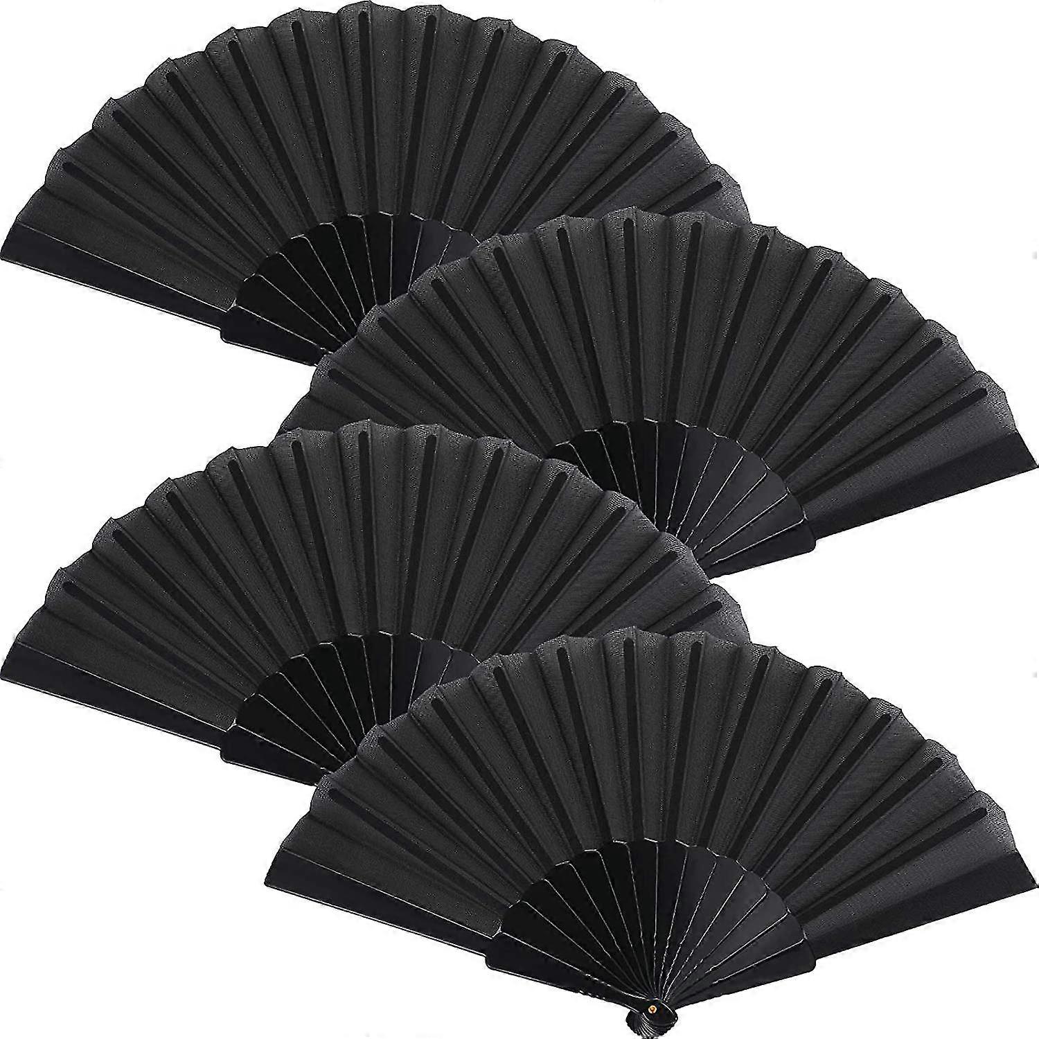 4 Pieces Handheld Folding Fan Chinese Fan Oriental Cloth Fabric Fan For Dancing, Party, Wedding Gifts, Diy Decoration, Home Decorations (black)