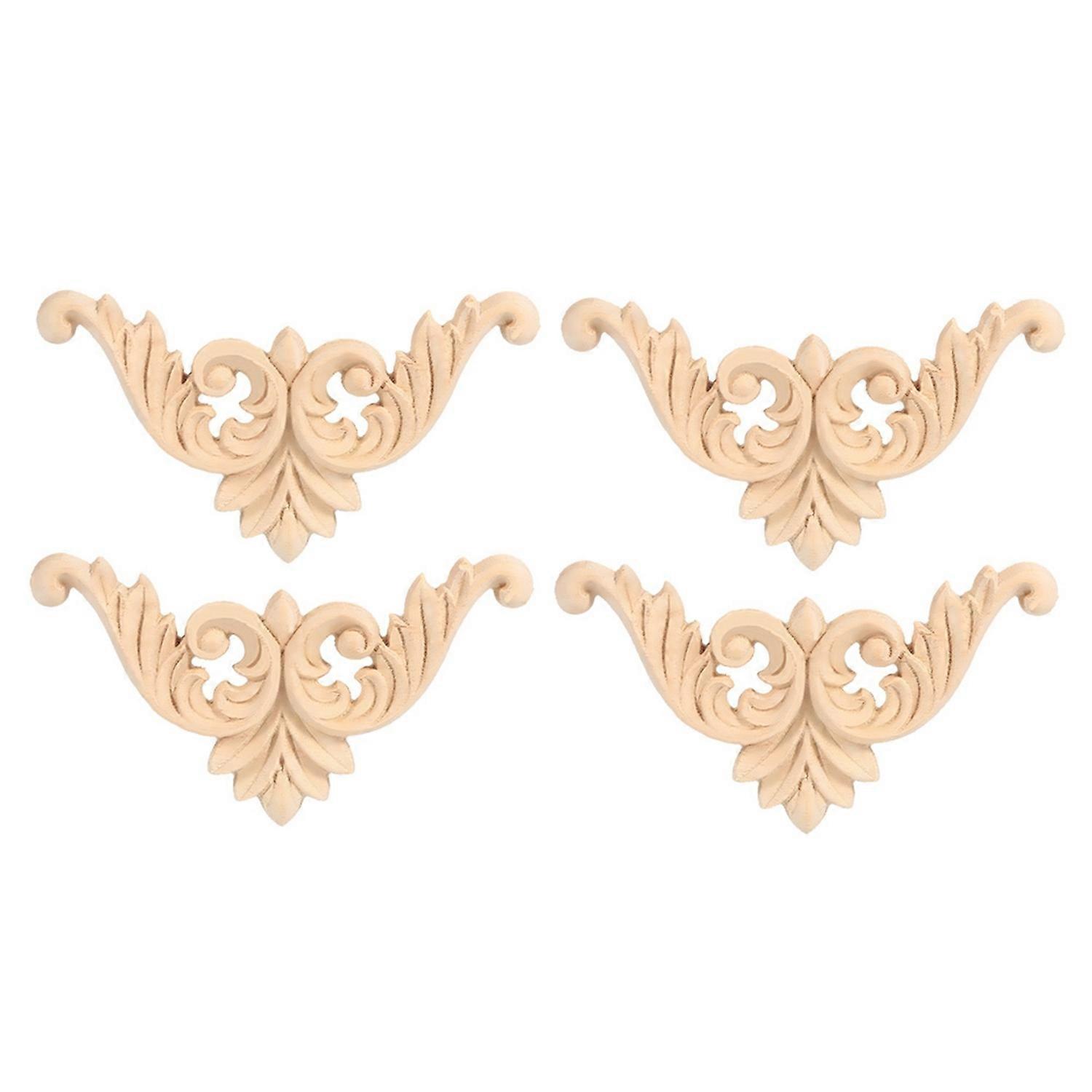 4PCS Rubber Wood Carved Corner Onlay Applique Furniture Flower Shape Unpainted 8 x 8cm