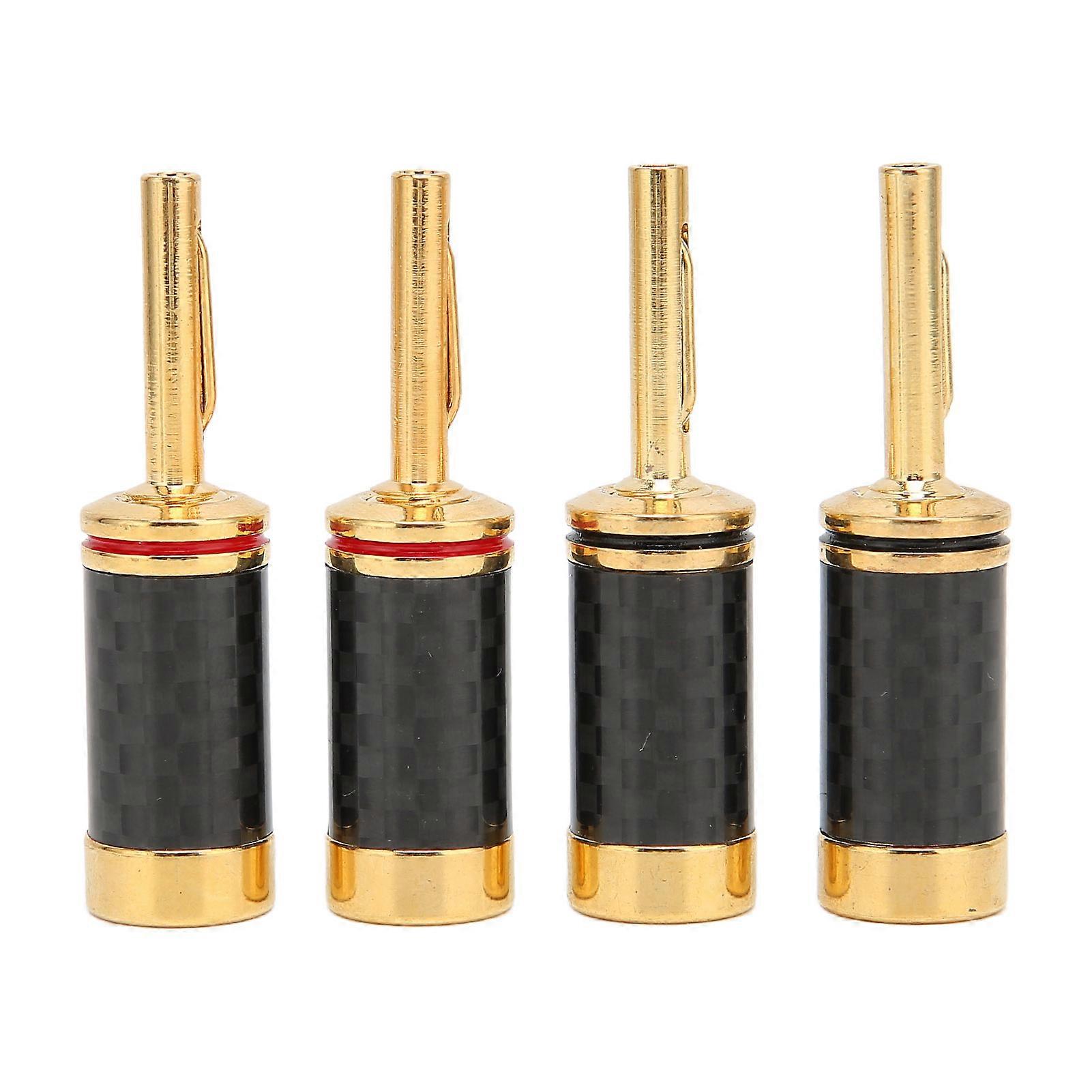 4pcs Banana Plug Brass Gold Plated Black Carbon Fiber Shell Banana Plugs Connector For 5mm Wire Diameter
