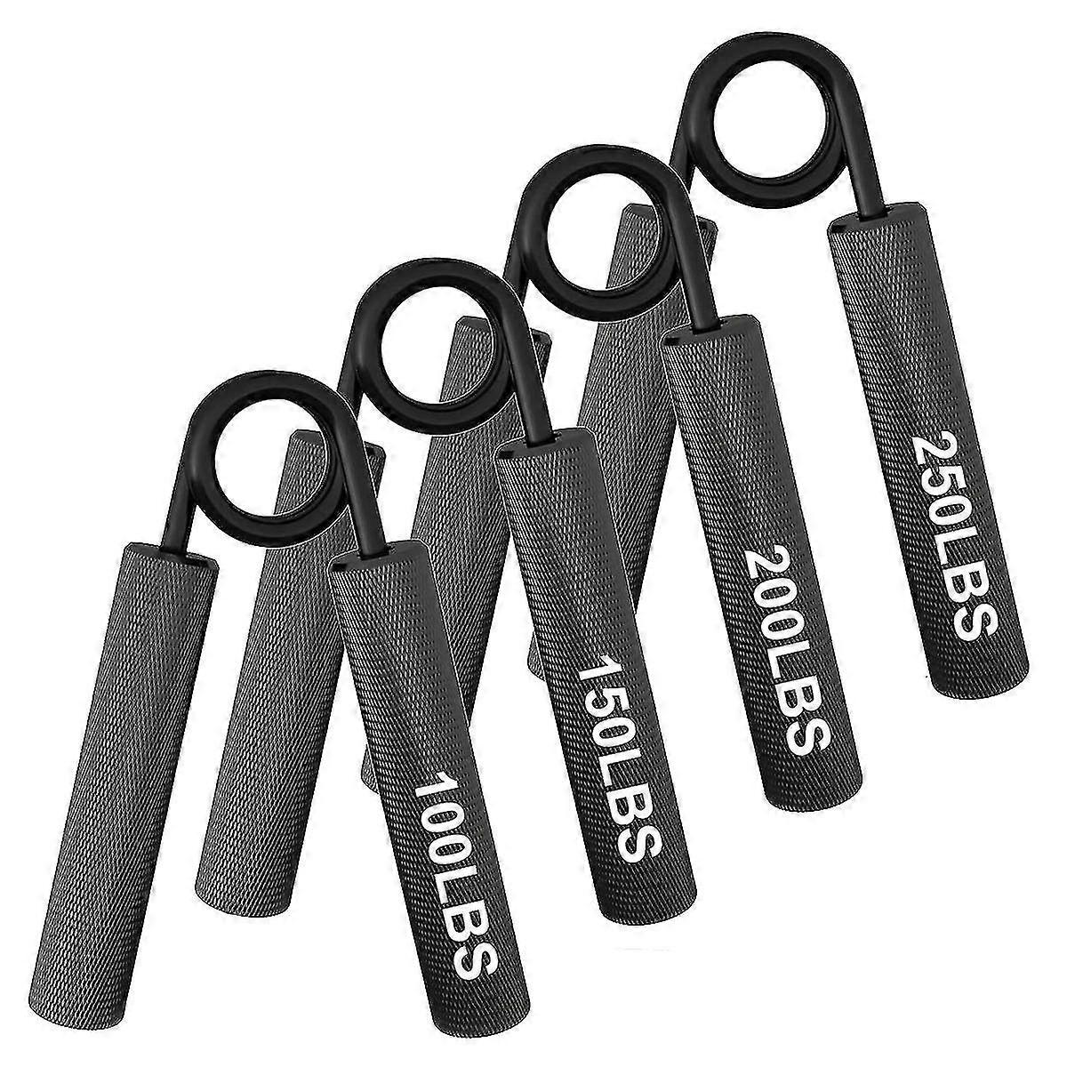 4 resistance levels: 4 pieces (100, 150, 200, 250 lbs) handles that strengthen your forearm and grip. Our handles are the perfect way to build hand strength and improve your grip. As your hands get stronger, you will be to lift heavier weights. perfect workout equipment: grip strength trainer is perfect for forearm training, hand training, finger training. It is simple and efficient, then it helps strengthen your grip, relieve stress and increase endurance. perfect for those who want to develop and maintain strong, healthy hands. Portable and effective: thanks to the pocket size, you can take these handles with you and train anywhere. You can train the grip strength while you are in or even travelling. Crazy rope transforms your downtime into a productive workout session. HIGH QUALITY AND DURABILITY: Made of durable aluminum knurled handles and high-strength spring. The aluminium handles are strong yet , gentler for your hands while you are still doing a big workout. Colour:Black Material:Metal Package Contents: 1 * 50LB Hand Exercise Trainer 1 * 150LB Hand Exercise Trainer 1 * 200LB Hand Exercise Trainer 1 * 250LB Hand Exercise Trainer Only the above package content, other products are not included. Note: Light reflection and different displays may cause the color of the item in the picture a little different from the real thing. The measurement allowed error is +/- 1-3cm.