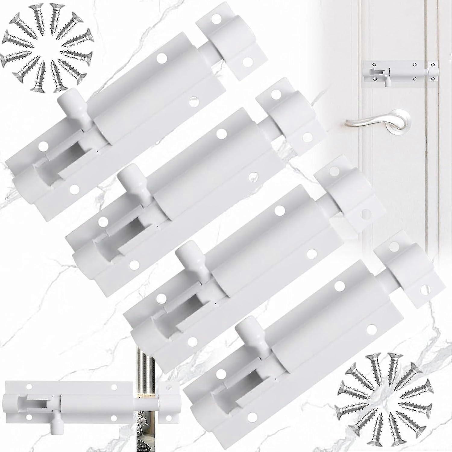 4 Pcs Sliding Bolt Door Latch, Aluminum Alloy Door Latch, White Door Latch, Sliding Latch with Screws, for Garden Gate, Shed, Toilet