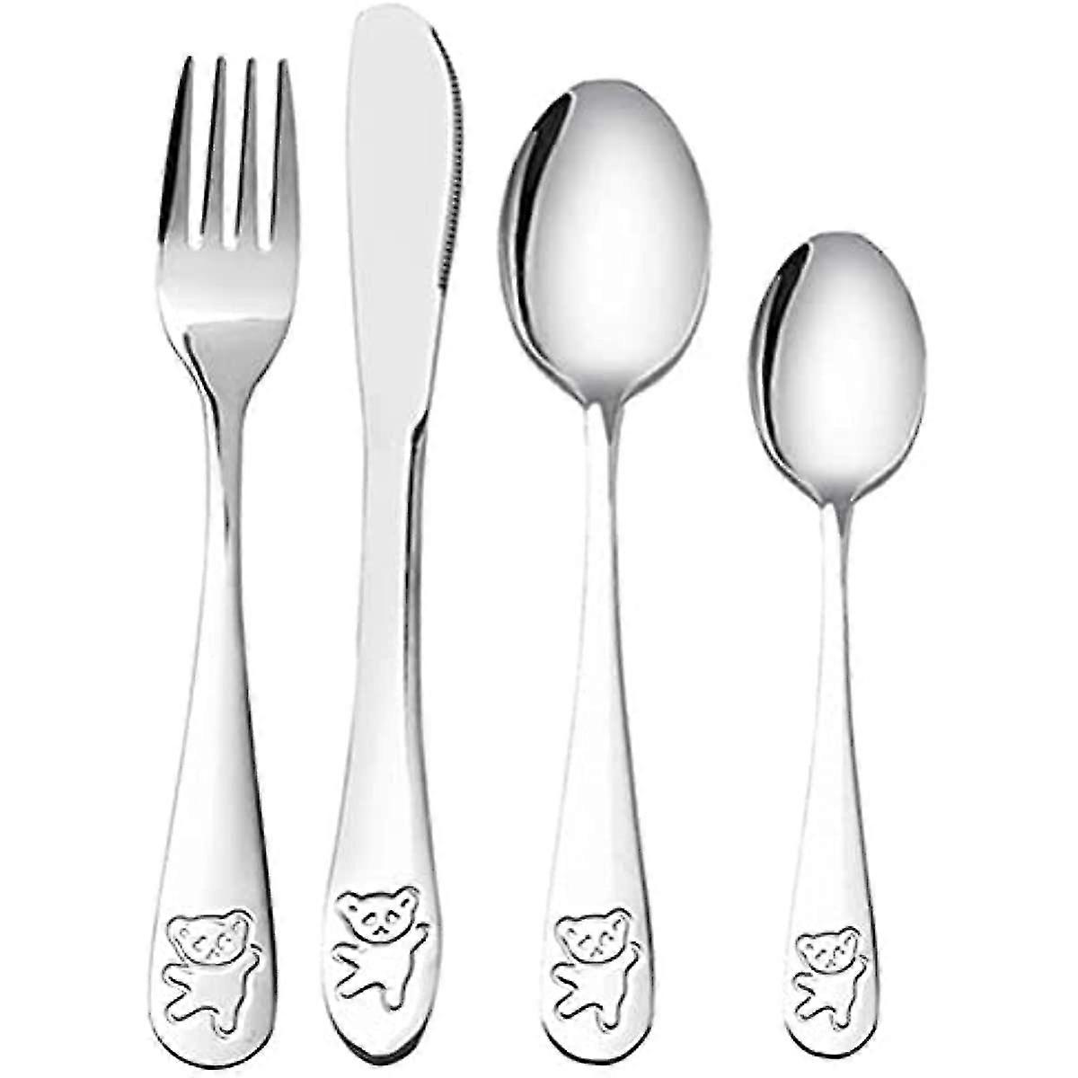 4pcs Kids Cutlery Flatware, Stainless Steel Bear Toddler Utensils Children's Cutlery Set Incudes 2 X Spoons, 1 X Forks, 1 X Knives