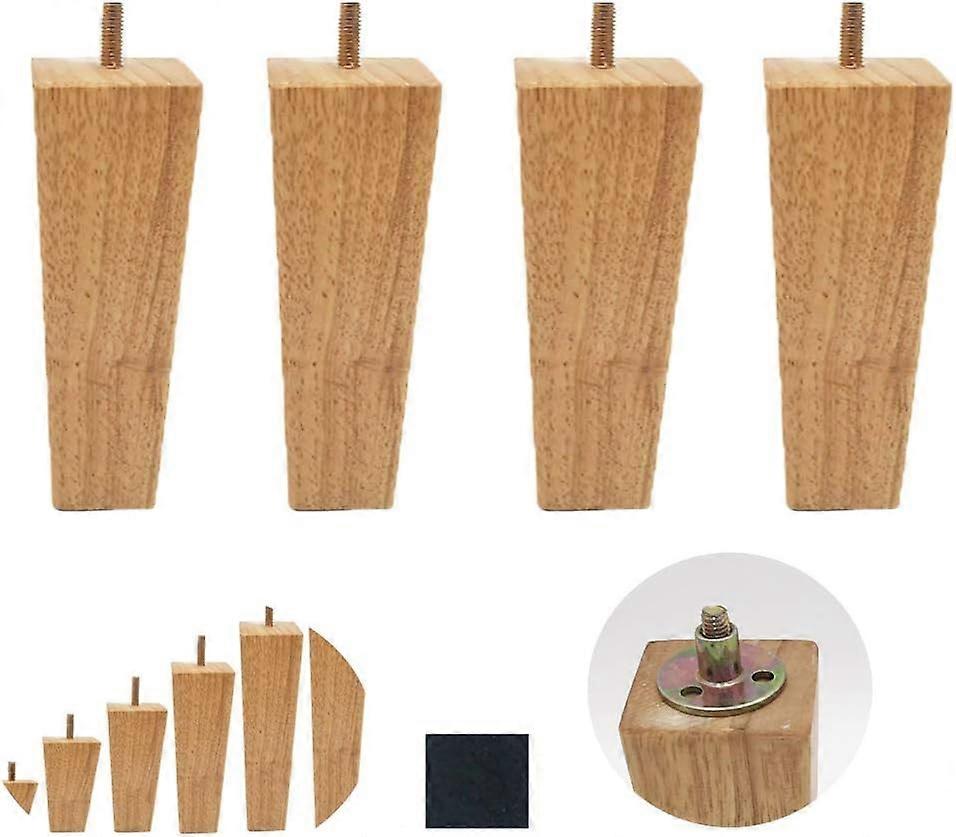 4 Pcs Solid Wood Sofa Foot Coffee Table Foot Wooden Foot Sofa Leg Bed Leg TV Cabinet Foot with M8 Screw, Wood Color (15cm)