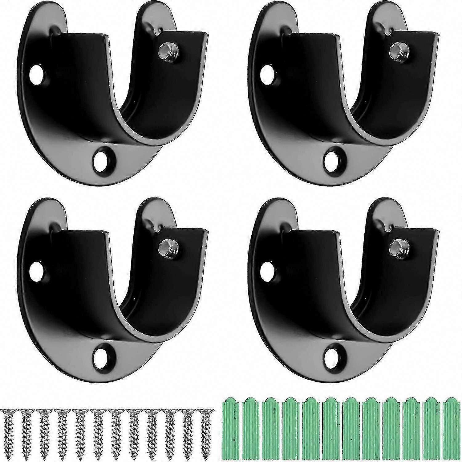 4pcs Black U Shaped Curtain Rod Brackets, 25mm Stainless Steel Closet Pole Sockets with Screws, Flange Mounting Rod Ends